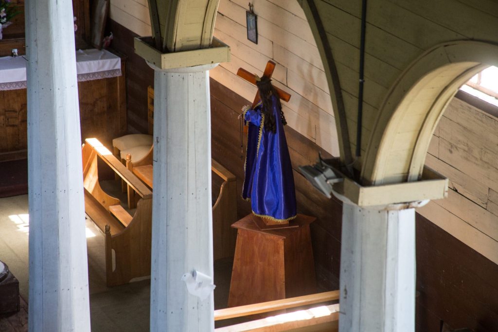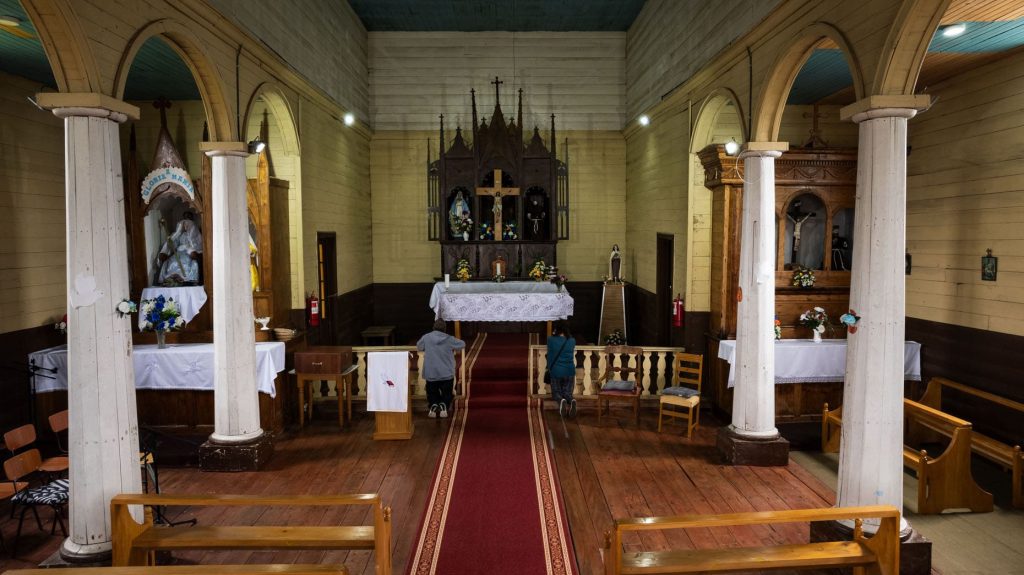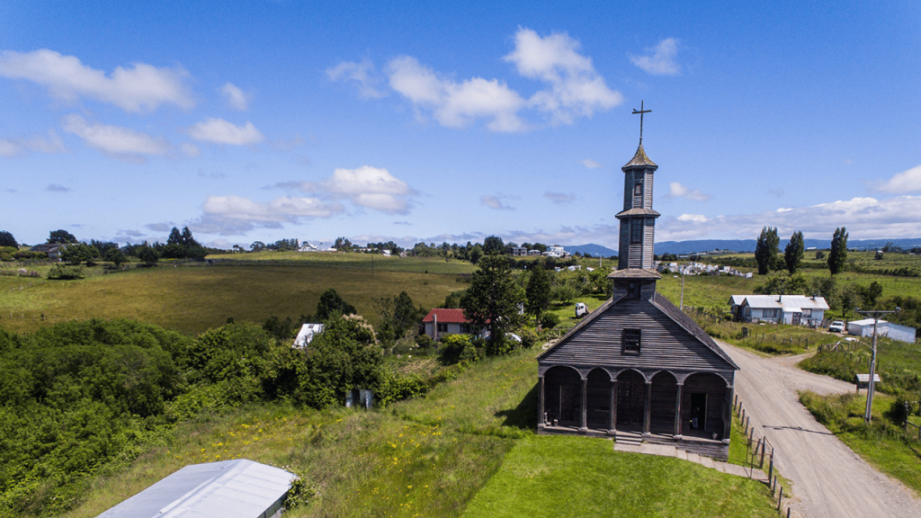 También se cuenta que Charles Darwin visitó la iglesia de Vilupulli en 1843. (Fuente: PTI Iglesias Patrimoniales de Chiloé. (s.f.). Recuperado el 25/09/2025 de sitio web: https://www.rutaiglesiaschiloe.cl/iglesias/vilupulli)