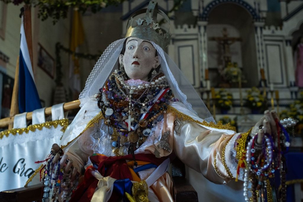 La imagen de Jesús Nazareno de Caguach, con su pelo natural y capa morada, es la más venerada e imitada. Según la leyenda, a fines del siglo XVIII, los habitantes de las islas de Caguach, Alao, Apiao, Tac y Chaulinec vivían en conflicto constante. Con el fin de unir a estos pueblos, el sacerdote franciscano Hilario Martínez les llevó la imagen del Nazareno que estaba en Tenaún, con la idea de que organizaran una fiesta en conjunto. Sin embargo, al no llegar a un acuerdo sobre qué isla debía quedarse con la imagen, se decidió realizar una competencia de embarcaciones a remo. Los remeros de Caguach resultaron ganadores, por lo que la imagen quedó bajo su resguardo.