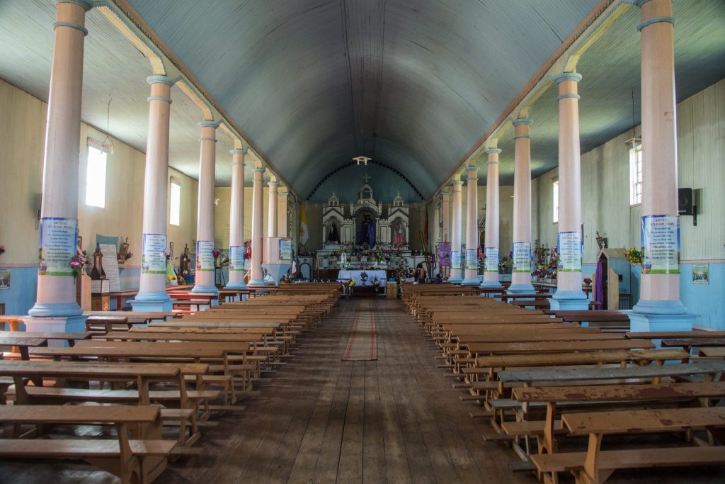Esta iglesia fue construida el año 1778 y destruida completamente durante un incendio en 1919, reedificándose el nuevo edificio en 1925 por los pobladores de la comuna. Consta de una explanada particularmente importante, en donde se efectúa la fiesta de su santo patrón, Jesús Nazareno. Esta es una de las fiestas más importantes del archipiélago de Chiloé y se remonta al año 1778, cuando cinco comunidades de islas cercanas se comprometieron a venerar a la imagen Jesús Nazareno que había sido traído de España por el misionero franciscano Fray Hilario Martínez.