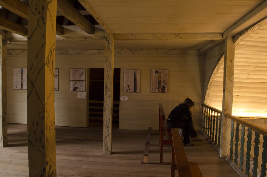 Tras la última restauración se dejó a la vista el “esqueleto” de la iglesia,lo que permite al visitante recorrer el entretecho para apreciar la parte exterior de la bóveda y el uso de ensambles y tarugos de madera.