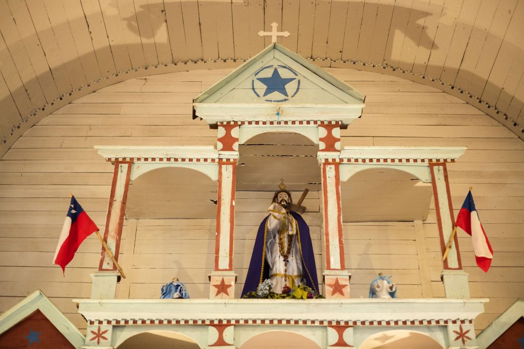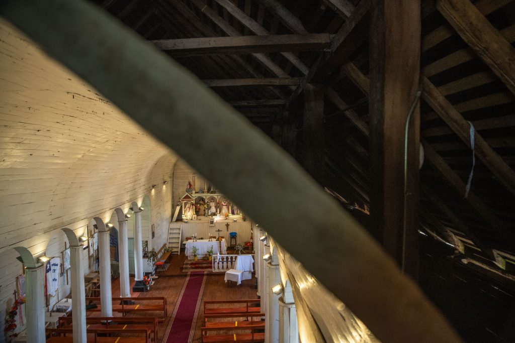 En el interior de la iglesia, se pueden apreciar pequeños barcos de madera que cuelgan de la nave principal. Se cuenta que estos barcos fueron instalados como ofrenda por navegantes locales que regresaron con vida,añadiendo un toque de tradición marinera a este espacio sagrado. (Fuente: PTI Iglesias Patrimoniales de Chiloé. (s.f.). Recuperado el 25/09/2025 de sitio web: https://www.rutaiglesiaschiloe.cl/iglesias/detif)
